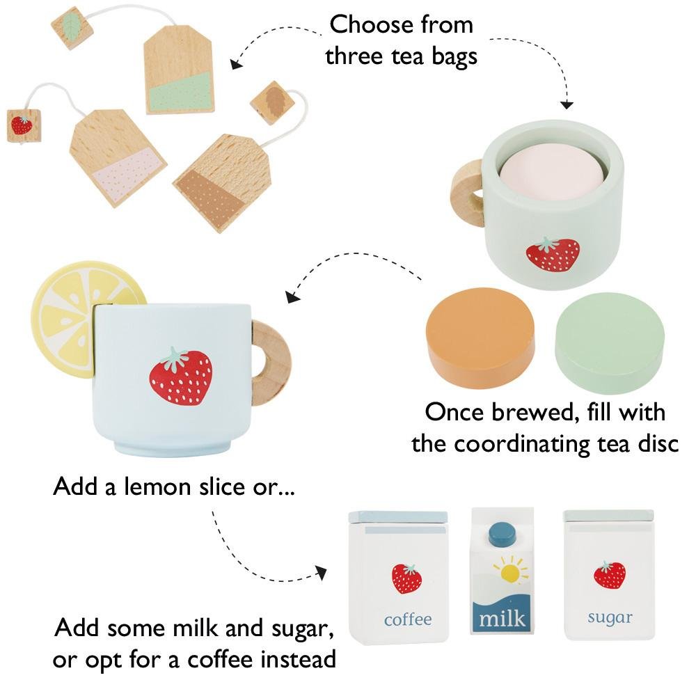 This wooden tea set is one of our favourite children’s toys. It’s the perfect set for children who love to mimic their parents’ daily rituals. From deciding whether to indulge in a pretend herbal tea or a milky coffee, to slotting lemon slices into place and choosing between the three delicious biscuits, this is role play fun at its sweetest.